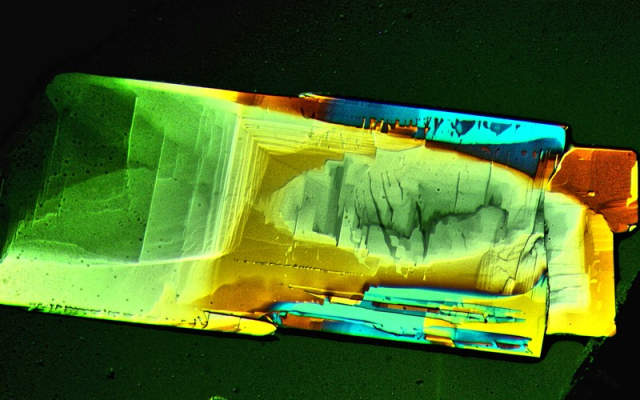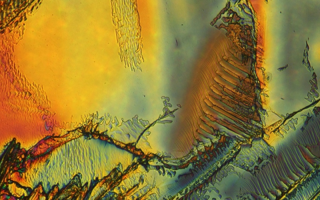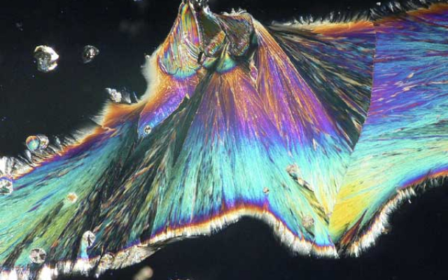 Unter dem Polarisationsmikroskop, einzeln oder miteinander vermischt und unter besonderer Lichtführung entfalten sie eine Fülle von Farben des gesamten Spektrums, jeweils in eigener Form und Gestaltung. Der subjektive Blick des Betrachters und seine Assoziationen lassen eigene Welten entstehen, voller Schönheit und Farbenpracht.