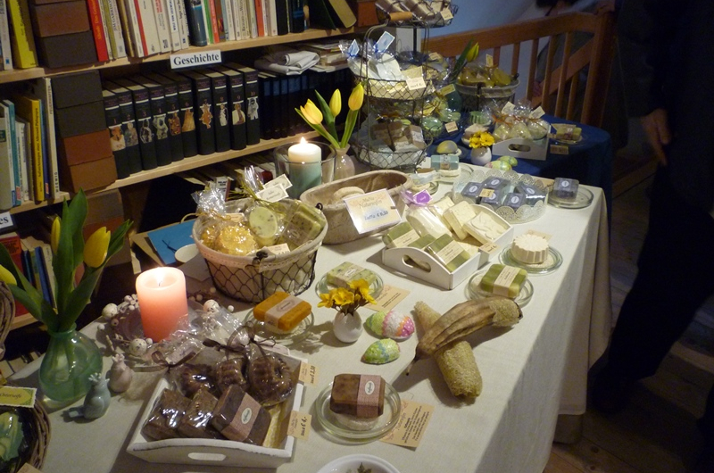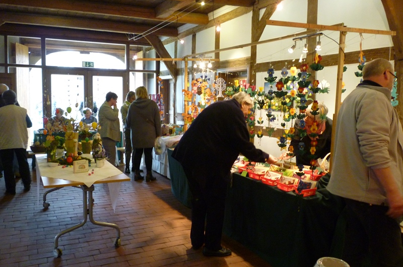 Es werden viele unterschiedliche Dinge wie z.B. Pralinen, Likör, Marmelade, Honig, Papierarbeiten, Seife, Naturkosmetik, Wohlfühlkissen, Schmuck, Näharbeiten, Floristik, Holzarbeiten, Gartendekorationen, Keramik, Körbe- und Stuhlflechten und mehr angeboten. Unsere Hobbys sind kreativ und bunt. Es gibt vieles zum Entdecken, Testen oder Ausprobieren. Bestimmt findet sich so manches Schönes für das Osterfest.