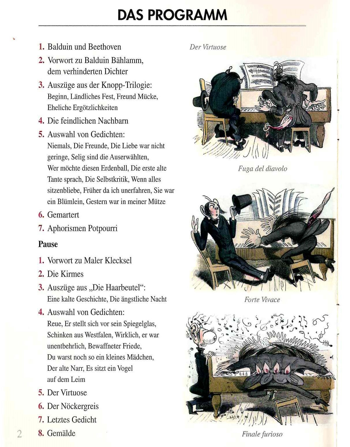 Das WILHELM BUSCH Programm besteht aus Gedichten, Geschichten und Zeichnungen von Musik beflügelt