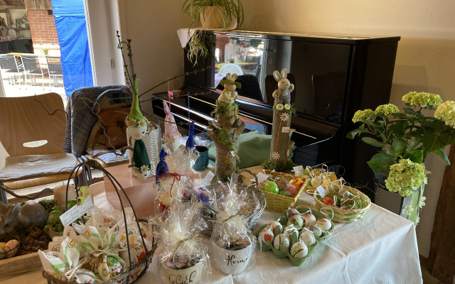Es werden viele unterschiedliche Dinge wie z.B. Pralinen, Likör, Marmelade, Honig, Papierarbeiten, Seife, Naturkosmetik, Wohlfühlkissen, Schmuck, Näharbeiten, Floristik, Holzarbeiten, Gartendekorationen, Keramik, Körbe- und Stuhlflechten und mehr angeboten. Unsere Hobbys sind kreativ und bunt. Es gibt vieles zum Entdecken, Testen oder Ausprobieren. Bestimmt findet sich so manches Schönes für das Oserfest.