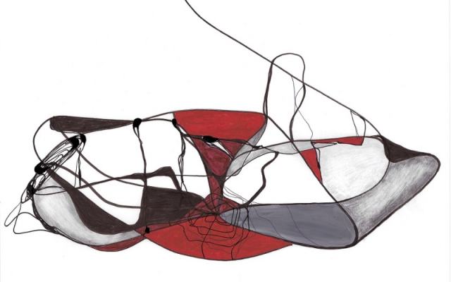 In der Serie „Dialogue“ mit ihren abstrakten Zeichnungen werden organische Formen in Beziehung  zu geometrischen Linien und Flächen gesetzt. Die Gegenpole gehen einen Dialog ein, sie verbinden, überlagern, berühren sich und setzen Grenzen.