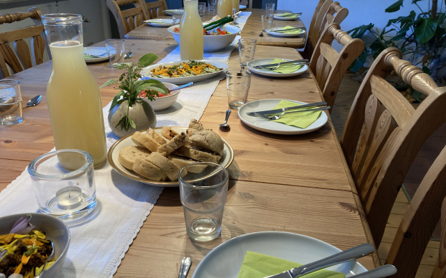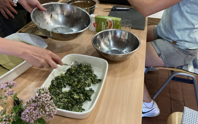 Für das Kochen bitte Küchenmesser (klein, groß) und Holzbrett mitbringen.