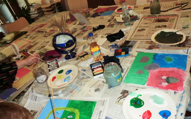 Kathrin Müller-Struß malte an 2 Tagen mit Schülern im Alter von 6 – 10 Jahren im Müllerhaus